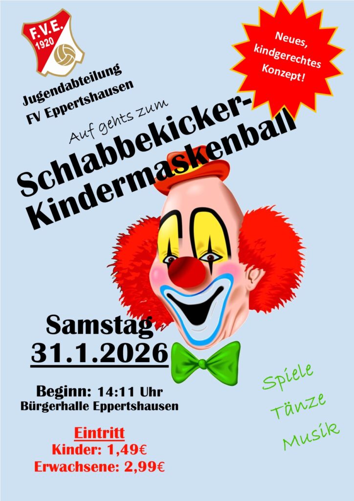 Mit großer Vorfreude möchten wir zu unserem Kindermaskenball am Samstag, 31.01.2026 einladen. Saalöffnung ist um 13:55 Uhr, los geht es dann um 14:11 Uhr mit einer tollen Mischung aus Fastnachtsmusik, Spielen und tollen Tänzen. Mit unserem kindgerechtes Konzept und den neuen Fastnachtsanimateuren Finn Kreher und Marc Sperl an der Spitze sind wir sicher, dass alle großen und kleinen Narren viel Spaß in der Bürgerhalle haben werden.